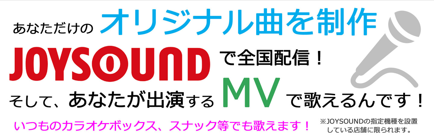 制作されます1曲を通信カラオケJOYSOUNDに貴方の名前で登録いたします。登録完了から約1カ月で、全国のJOYSOUNDにて配信が開始されます。